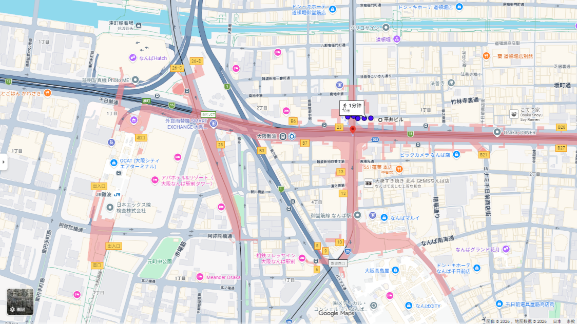 ▸心齋橋、道頓堀、日本橋商圈皆在步行範圍內,商業設施與生活便利設施完備,租賃需求旺盛,作為投資物件極具吸引力。